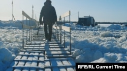 Если на горизонте появляется и начинает гудеть баржа или ледокол, "дорога жизни" останавливается. После того, как пройдет пароход, обычно остается десятиметровая полынья.
