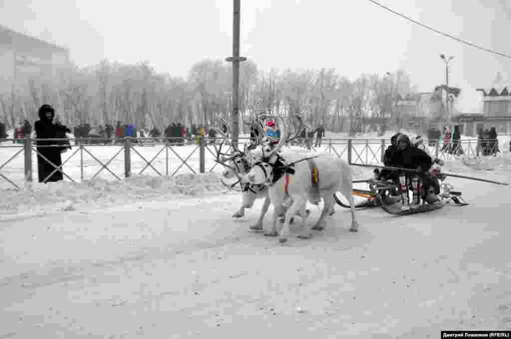 После конкурса зрители могли сфотографироваться с оленями, прокатиться в упряжке за деньги, купить шашлык.