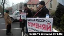 Несколько активистов вышли на пикет к зданию областной думы и потребовали изменить региональный закон о публичных мероприятиях — отменить запрет на акции у зданий органов власти, больниц и школ.