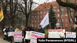 Калининградские активисты вышли на пикет к зданию областного правительства. Они протестовали против регионального закона о митингах. Мэрия согласовала мероприятие впервые за семь лет, передает корреспондент Север.Реалии.