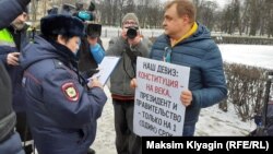 В Петербурге на Сенатской площади на пикетах против поправок в Конституцию задерживают активистов, сообщает корреспондент Север.Реалии.