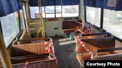 В Воркуте в автобусах с 6 апреля появились ограничительные ленты на креслах, которые не позволяют пассажирам присесть. Это сделали для того, чтобы соблюсти дистанцию в 1,5 метра между людьми, сообщила пресс-служба мэрии города.
