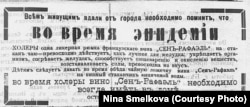"А я всё-таки не верю холере. На улицах ловят всех пьяных и полупьяных (а пьют очень много, оказия славная с горя), берут в больницы, бродяг также. Всё это считается больными. Доктора поддерживают, что прежде говорили: выгода их, чтобы было сказано, что их стараниями холера уничтожена. Что будет – Богу известно, но до сих пор вижу я обыкновенные болезни, бывающие всякий год в это время от огурцов, капустных кочерыжек, яблоков и прочего", – зачитывает Нина Смелкова письмо москвича А. Я. Булгакова.