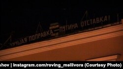 В Петербурге активисты вывесили баннер "Лучшая поправка - Путина в отставку"