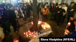 В конце акции собравшиеся зажгли свечи, встали вдоль Невского проспекта и почтили память Ирины Славиной минутой молчания.