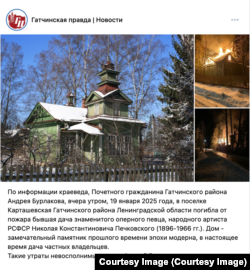 20 января в поселке Карташевская Гатчинского округа Ленобласти сгорела дача, где до 1958 года жил знаменитый оперный певец Николай Печковский (1896-1966). Последние владельцы дачи хотели открыть в одном из ее помещений выставку о полной самых неожиданных поворотов жизни артиста. Но не успели.