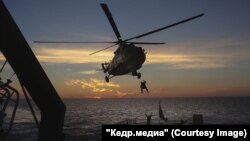 19 сентября, второй день акции у "Приразломной", на часах 18:24. Над Arctic Sunrise кружит вертолет, как позже выяснится, на его борту группа ФСБ России.