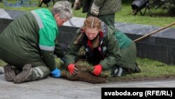 Издание уточняет, что место, где был газон, будут засеивать травой.